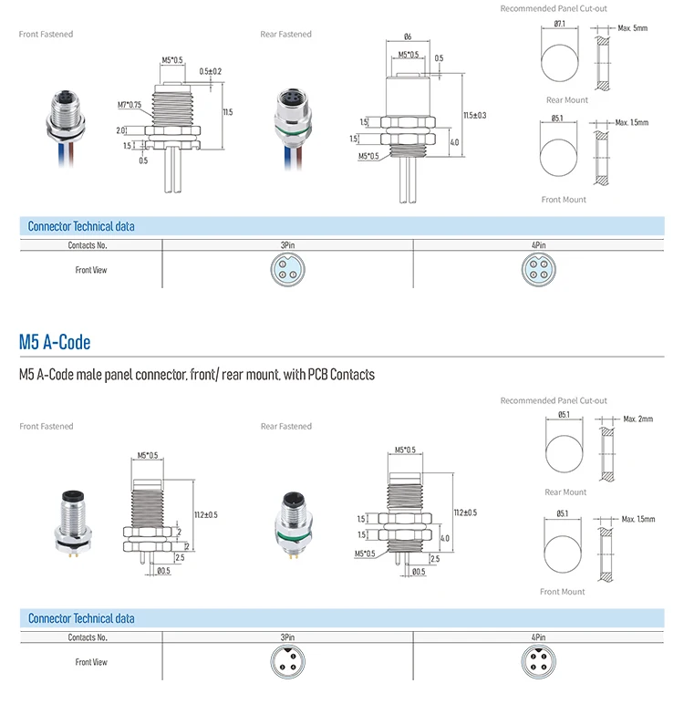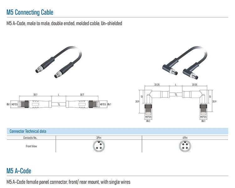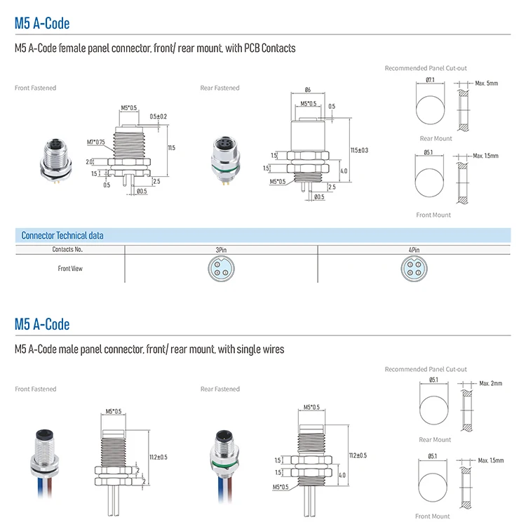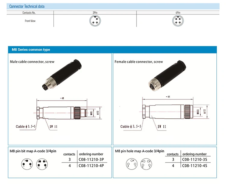 | Number of contacts | 3; 4; 5; 8; 12, 17pin |